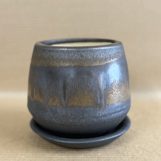 信楽焼き ヨイヤミポット クウィル 植木鉢受け皿セット ブラックゴールド