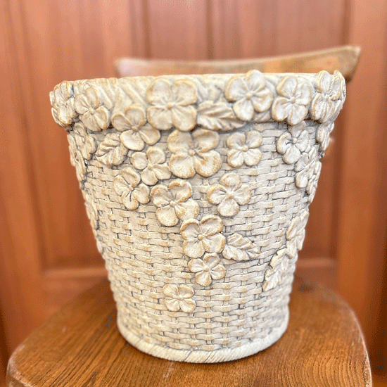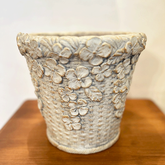 3,600円(税込3,960円)猫足が似合う可憐なローズのグラスファイバー植木鉢です。 -