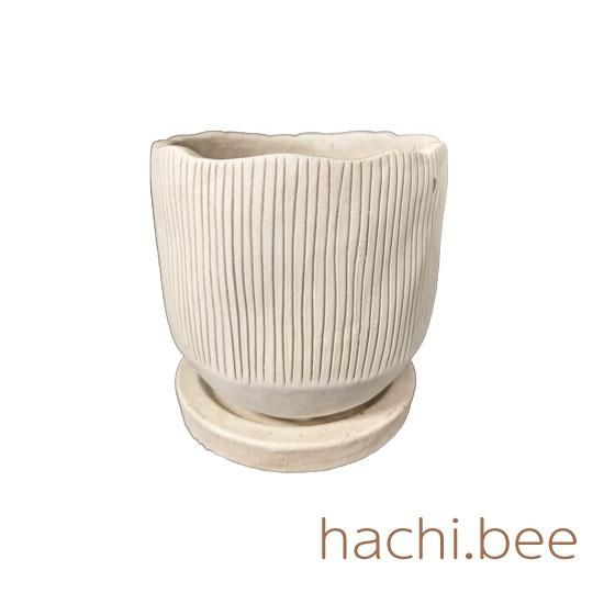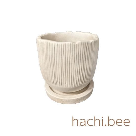 クリーミーポットM(受皿付)グレイズ加工 植木鉢 セラミック