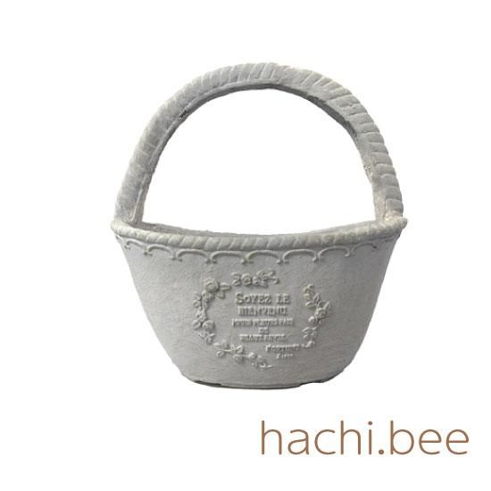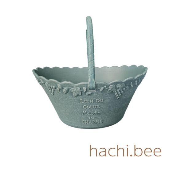 SOLD OUTアンティーク風仕上げのバスケット型の植木鉢で、エレガントなぶどうの縁取り模様が描かれています。 -