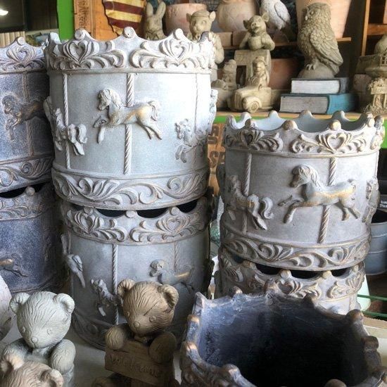 エレガントで可愛い、アンティーク感たっぷりなアイボリーゴールドのエルメメリーゴーランド植木鉢が入荷しました。