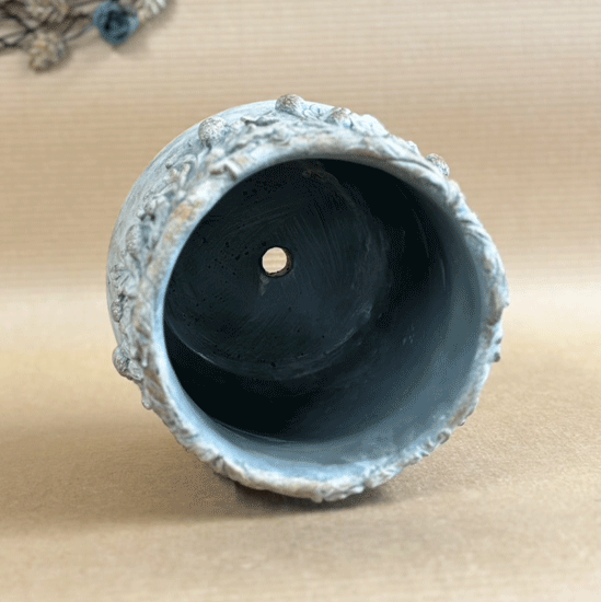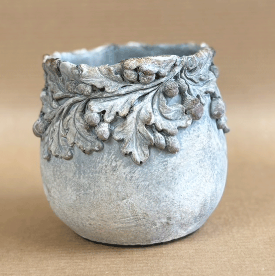 どんぐりの植木鉢です。小さめの実をたくさん付けたどんぐりの木がモチーフとなっていて、とってもおしゃれで