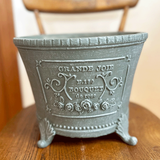 猫足が似合う可憐なローズのグラスファイバー植木鉢です。